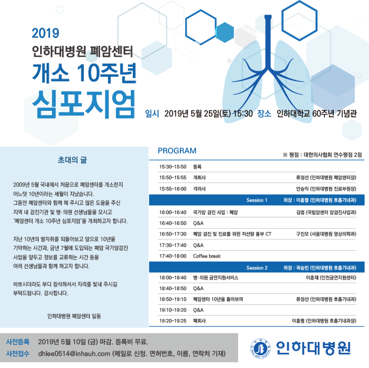 인하대병원 폐암센터 개소10주년 심포지엄 안내