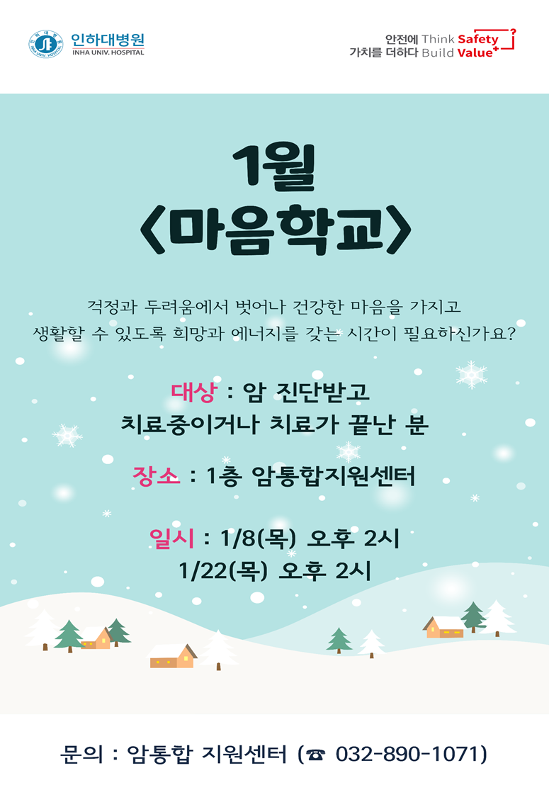 ◈ 대 상 : 인하대병원 암환자와 가족, '암'에 관심 있는자