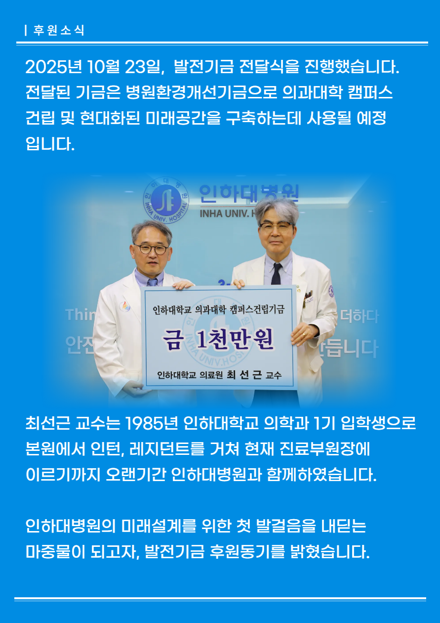 [ 의과대학 캠퍼스 건립 및 미래공간 리모델링 기금] 병원발전기금 전달식 개최 - 최선근교수, 양춘우교수, 심유식 교수