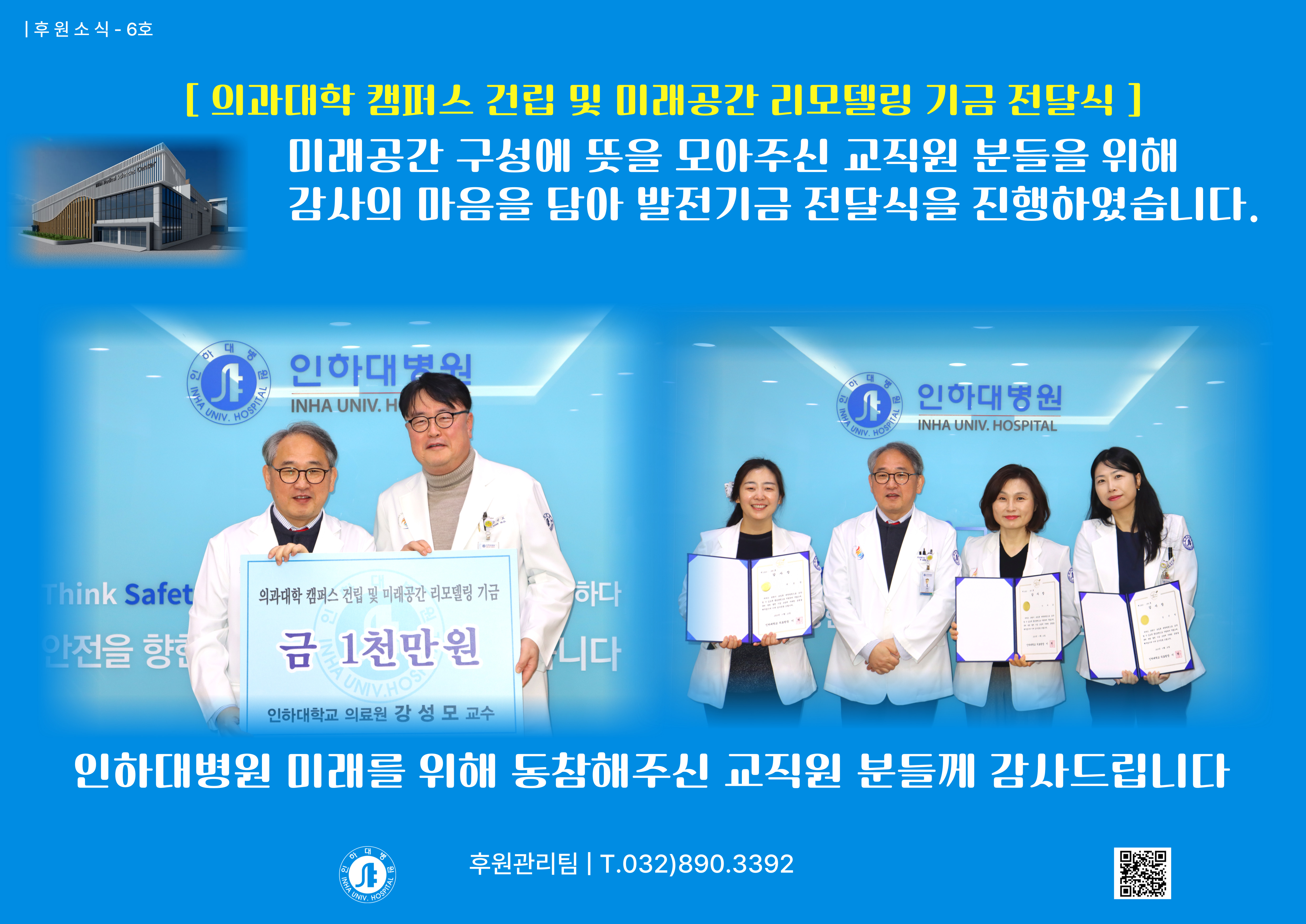 소중한 후원에 감사드리며, 항상 미래의학의 발전을 위해 노력하는 인하대병원이 되겠습니다.