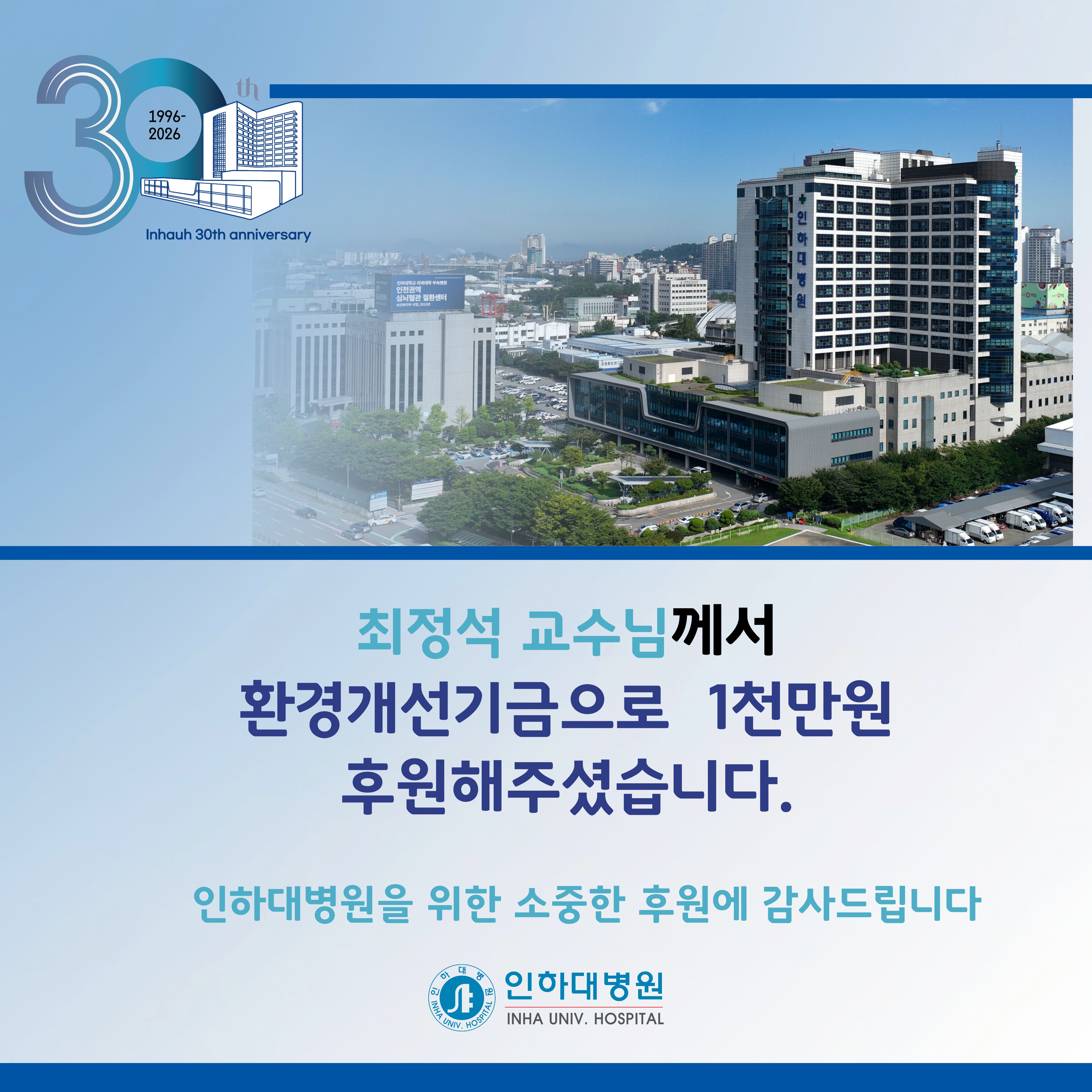 소중한 후원에 감사드리며, 항상 발전을 위해 노력하는 인하대병원이 되겠습니다.